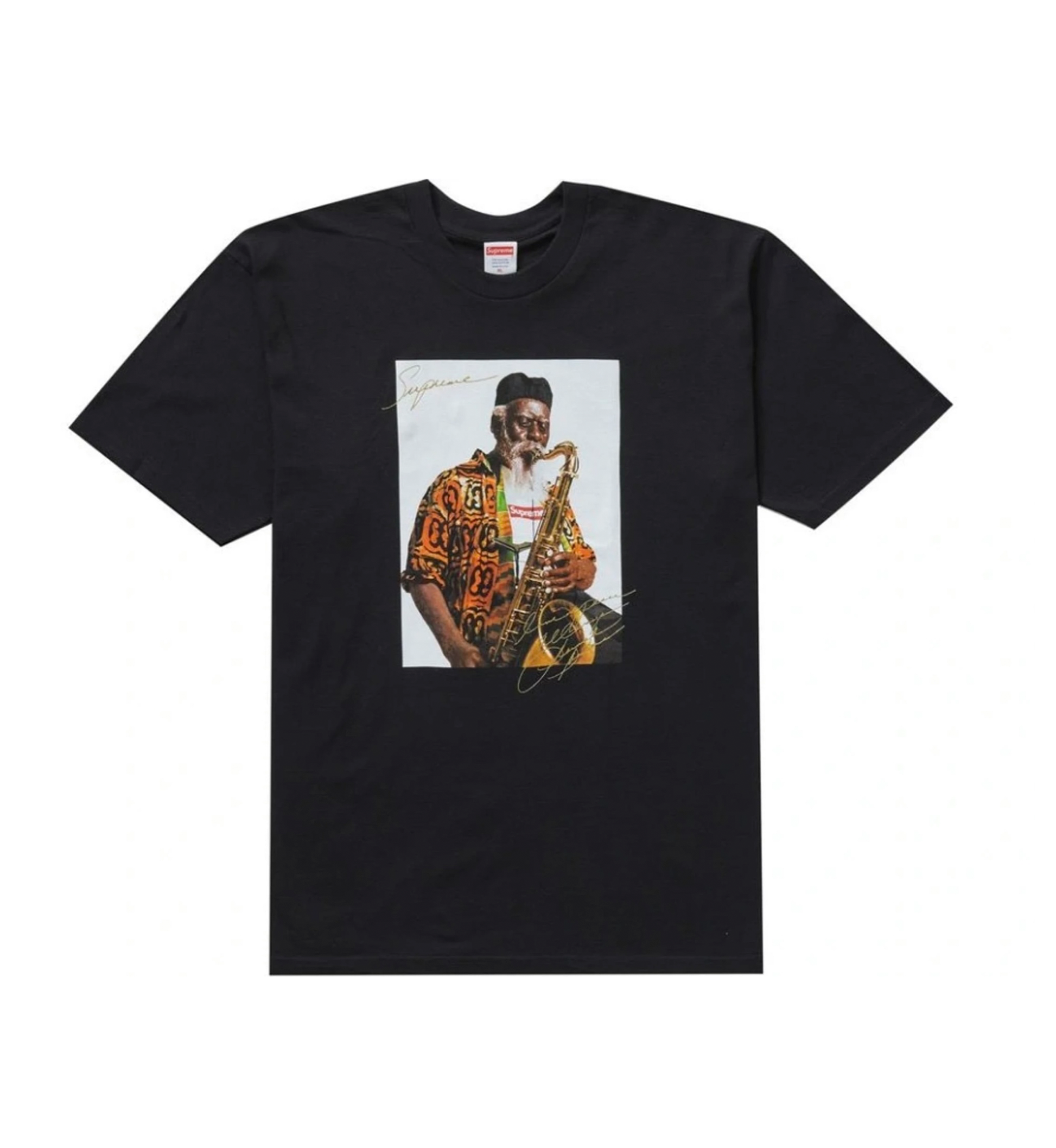 Supreme Photo Tees returned via the Pharoah Sanders T-shirt in FW20 after the Buju Banton T-shirt in SS20. As is customary of a photo tee, the Supreme Pharoah Sanders T-shirt features an image of the Grammy-winning saxophonist playing his sax in a Supreme Box Logo T-shirt. The black Supreme Pharoah Sanders T-shirt dropped in August, 2020.